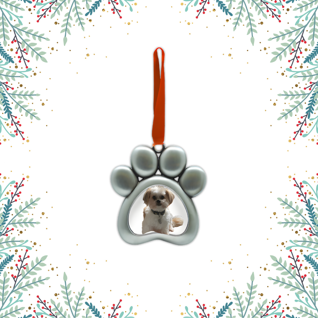 Capture your pet’s memory in a beautiful keepsake: the Pet Pawprint Photo Ornament combines a paw-shaped metal frame with a cozy satin ribbon and a spot for your favourite photo. A heartfelt gift for any pet lover or a sweet tribute to a furry friend.